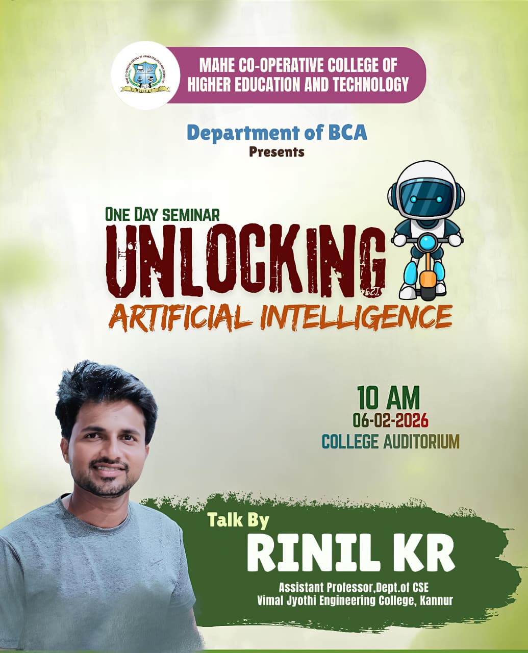 Mahe Co-Operative College of Higher Education and Technology, affiliated to the Pondicherry Central University offers education which focuses on overall development of our students. The college fosters an atmosphere of intellectual vigour and unpreachable rectitude in which the youth may find their fulfilment and achieve greatness as eminent citizens with integrity. The Campus is placed in Palloor Mahe, which is under the jurisdiction of Government of Puducherry. MCCHE&T bridges the gap between classroom learning and practical experiences, thereby creating continuously excellent result and employable professionals.